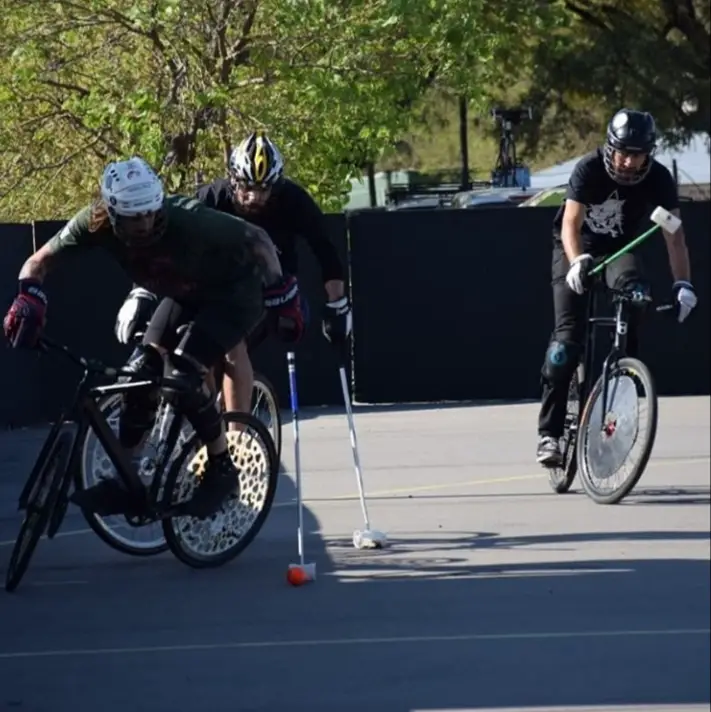 Bicipolo es, como lo dice su nombre, una mezcla entre las reglas del polo sobre el rodado, pero con algunas reglas del hockey sobre patines, se juega en equipos de tres personas y no hace falta una bicicleta especial.