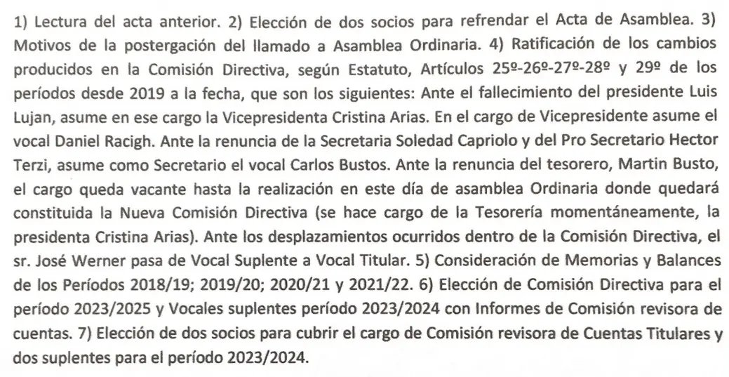 A través de un comunicado, el club dirigido por Cristina Arias, extendió la invitación a todos sus asociados para participar de la asamblea ordinaria del próximo sábado 25, dónde se elegirán las nuevas autoridades y se tratará el “orden del día”.