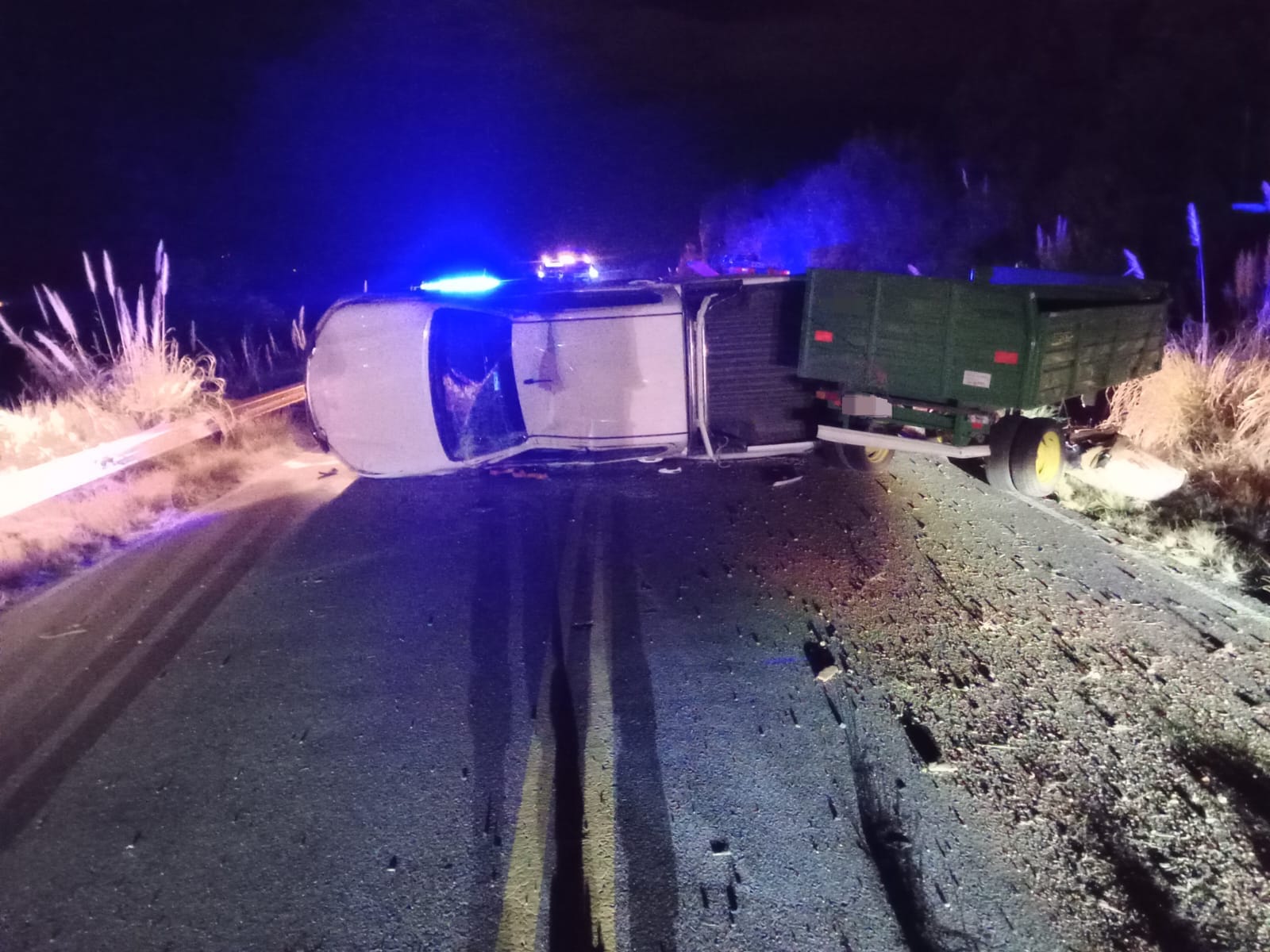 Este lunes por el madrugada, el conductor de una camioneta con acoplado perdió el control de su vehículo y terminó dando un vuelco. Luego quedó sobre los dos carriles de la autovía. Sucedió en el Camino de las Altas Cumbres.