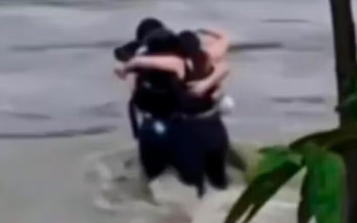 Tres amigos fueron filmados abrazándose momentos antes de ser arrastrados por las inundaciones repentinas en el norte de Italia el viernes pasado.