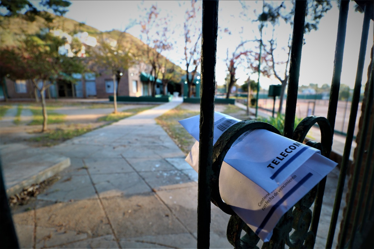 Y miro la puerta de hierro y reparo que… el único regalito, allí enganchado… el de Telecóm… pasa factura de pulsos en pesos.