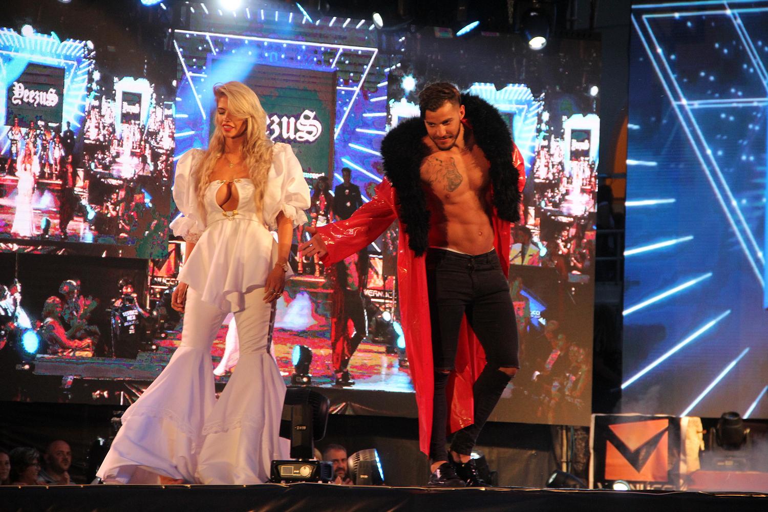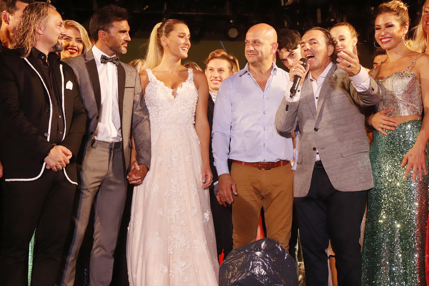 Uno de los momentos mediáticos que seguramente llamará la atención de los programas de chimentos y las revistas del «corazón», como se suele decir, fue la pasada de cierre del desfile con Fabián Cubero y Mica Vicicconte vestidos de novios.