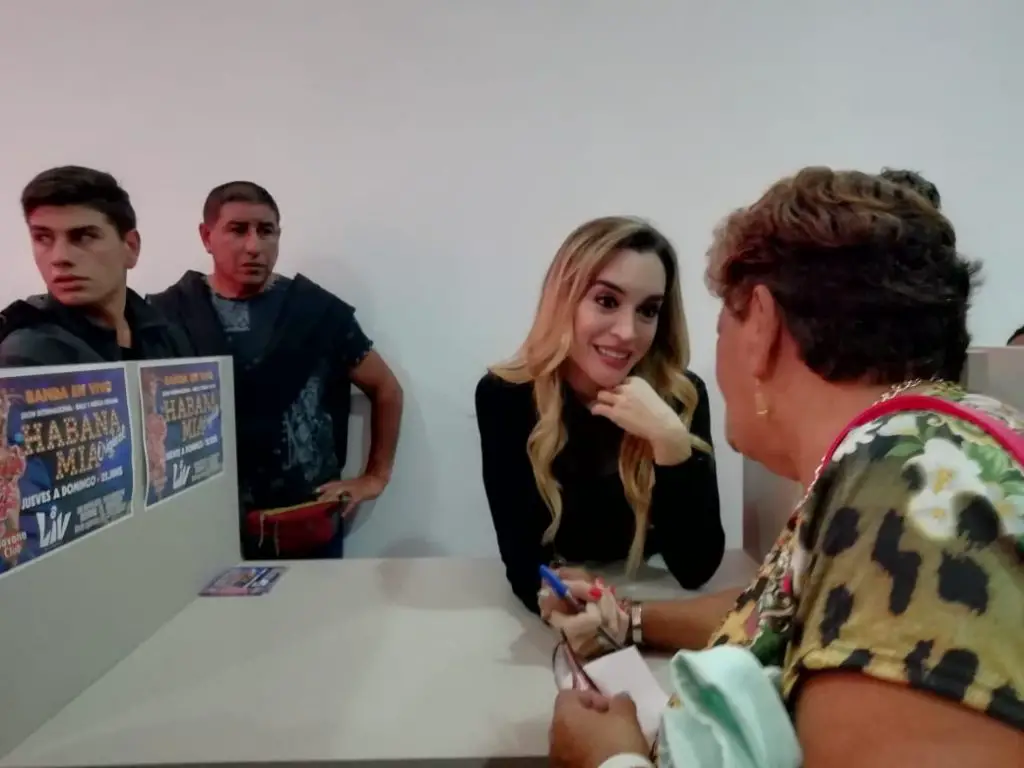 Otra de las artistas que apuesta al contacto directo con el público antes de su show, es Fátima Florez, quien ayer, alrededor de las 20, se presentó en el amplio local de venta de entradas ubicado también en la 9 de julio, para hablar con todo el que se acercara a ella a saludarla y sacarse fotos.