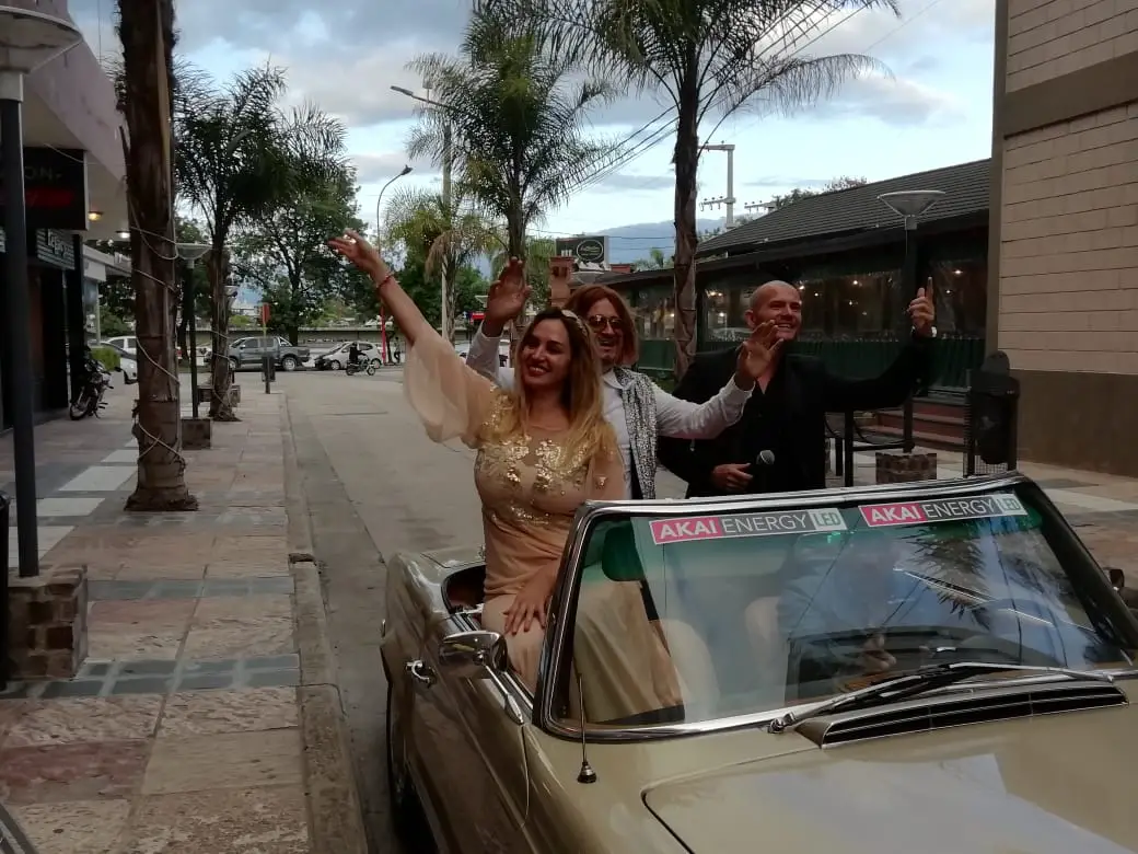 En la intervención que hicieron en la vía pública, todos subidos a un atractivo auto Mercedes descapotable, se encontraron con la gente que caminaba, merendaba o paseaba a lo largo y a lo ancho de la calle 9 de julio.