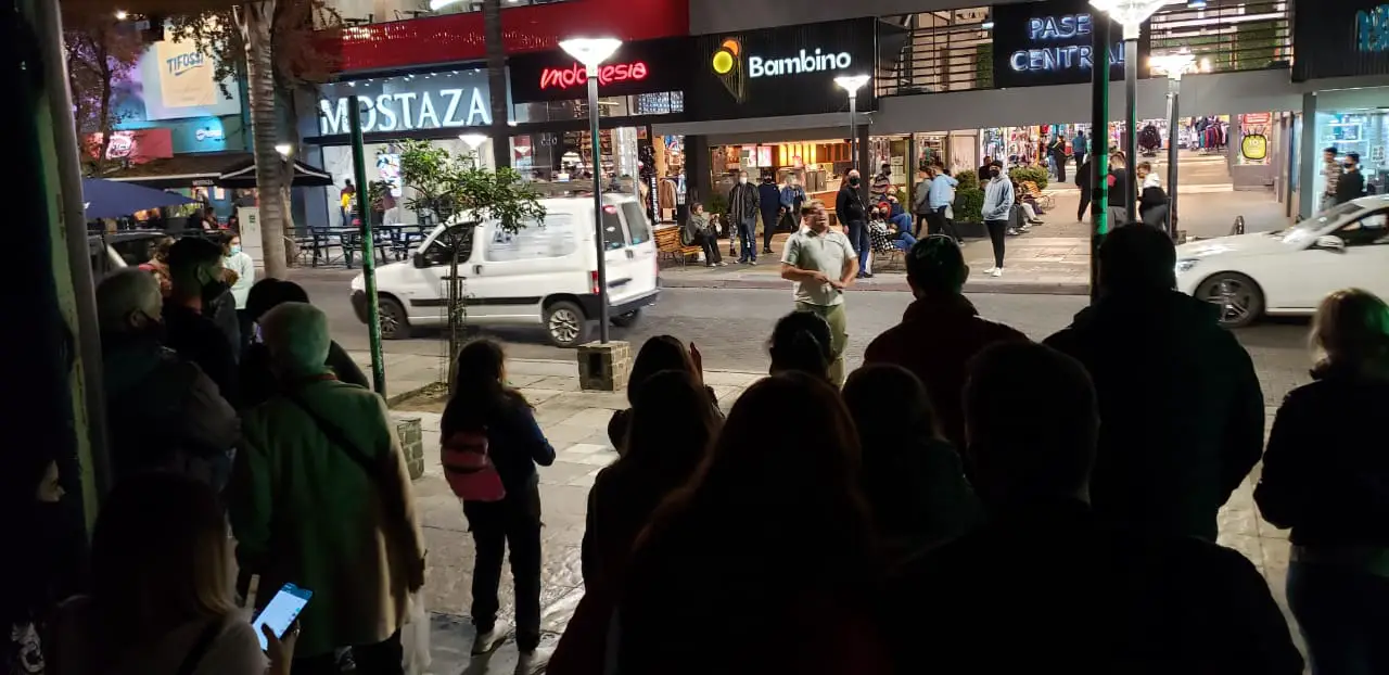 La imagen se pareció mucho a la de cualquier noche de la temporada. El domingo a la noche se vio a una buena cantidad de gente circulando por el centro de la ciudad, con artistas callejeros aglomerando gente a su alrededor sin distanciamiento ni precauciones.