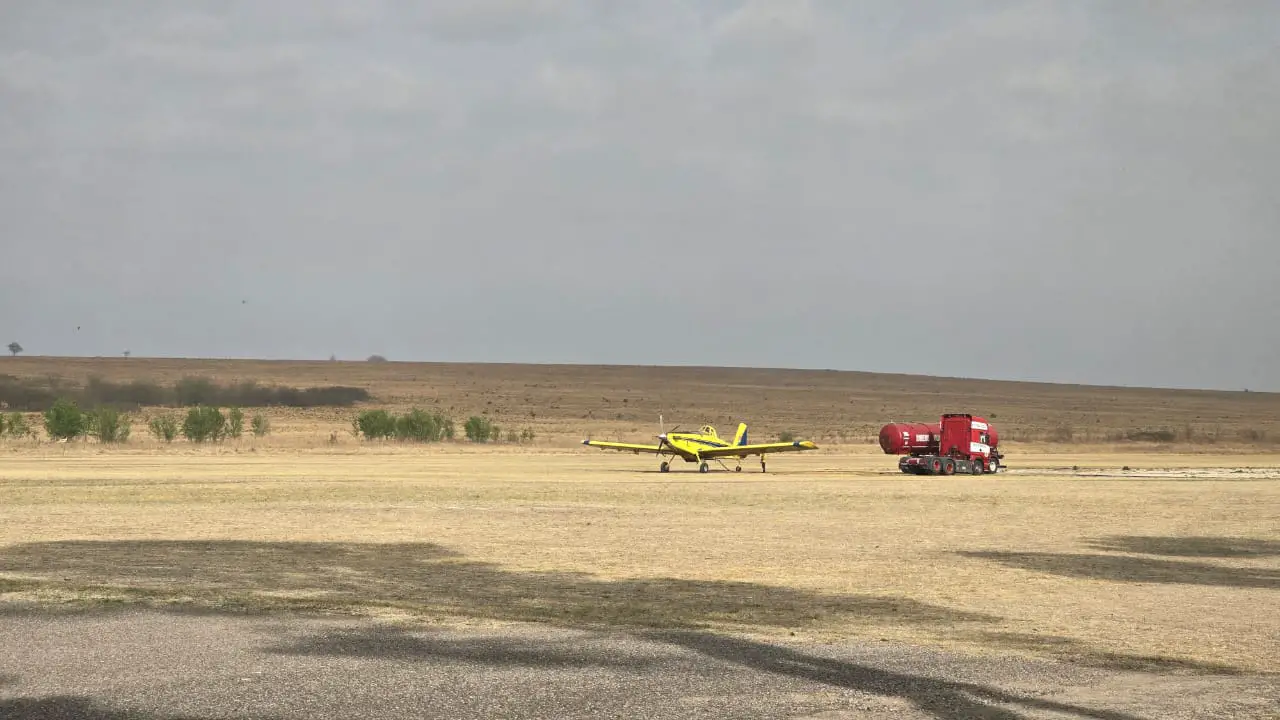Con las primeras horas de luz, los aviones hidrantes y el helicóptero comenzaron a trabajar, cargando agua en el aeroclub de La Cumbre.