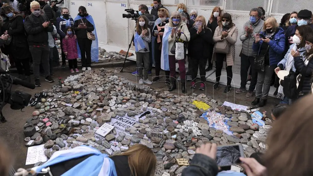 En tanto, el Gobierno resolvió construir “un espacio en memoria” de los fallecidos por el coronavirus con las piedras con nombres de las víctimas que manifestantes dejaron en el centro porteño y en Olivos, informaron fuentes oficiales.
