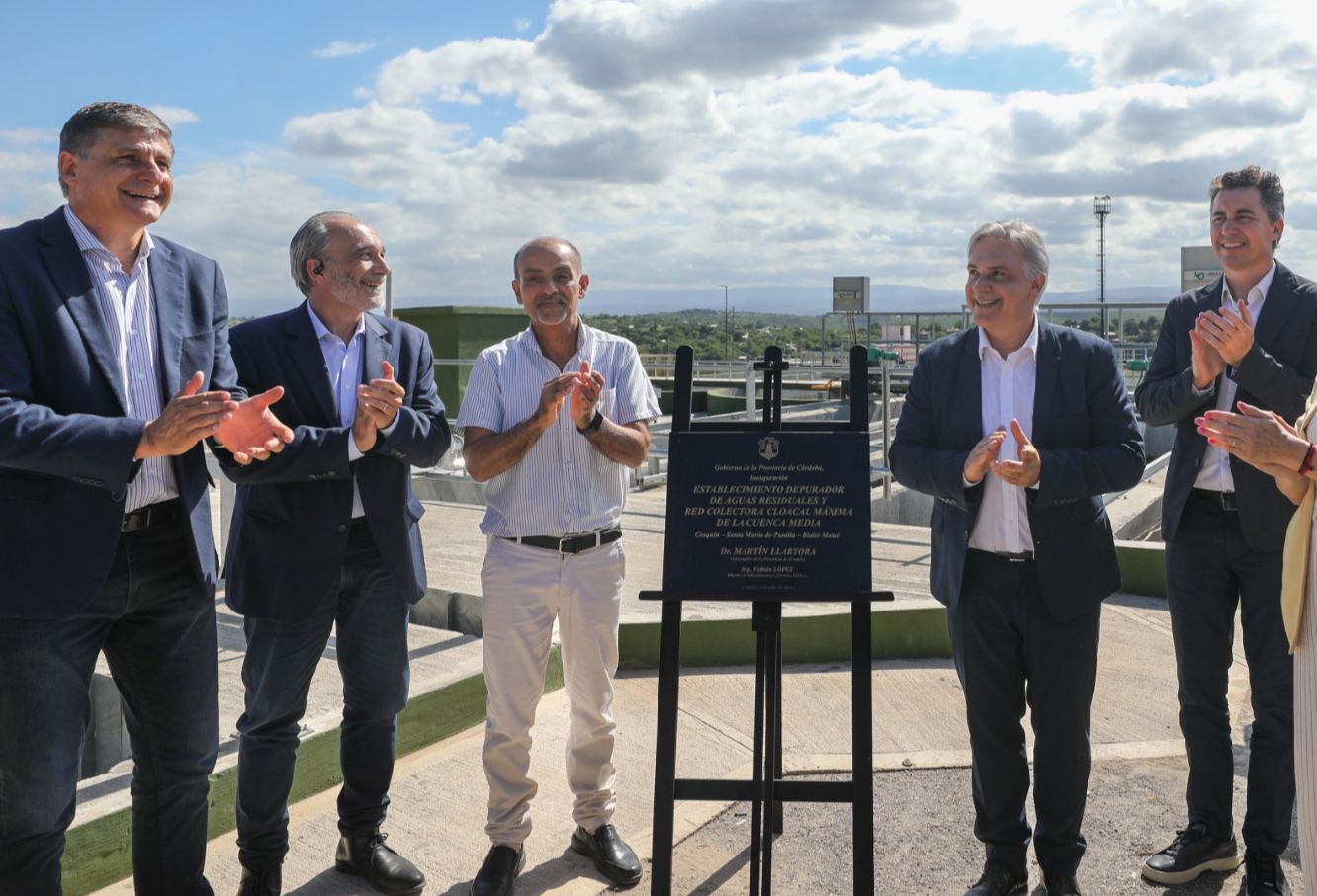 El gobernador Martín Llaryora inauguró en la tarde de este viernes la planta de tratamiento de líquidos cloacales de la Cuenca Media que servirá para el saneamiento del San Roque con la conexión de las ciudades de Cosquín, Santa María de Punilla y Bialet Massé.