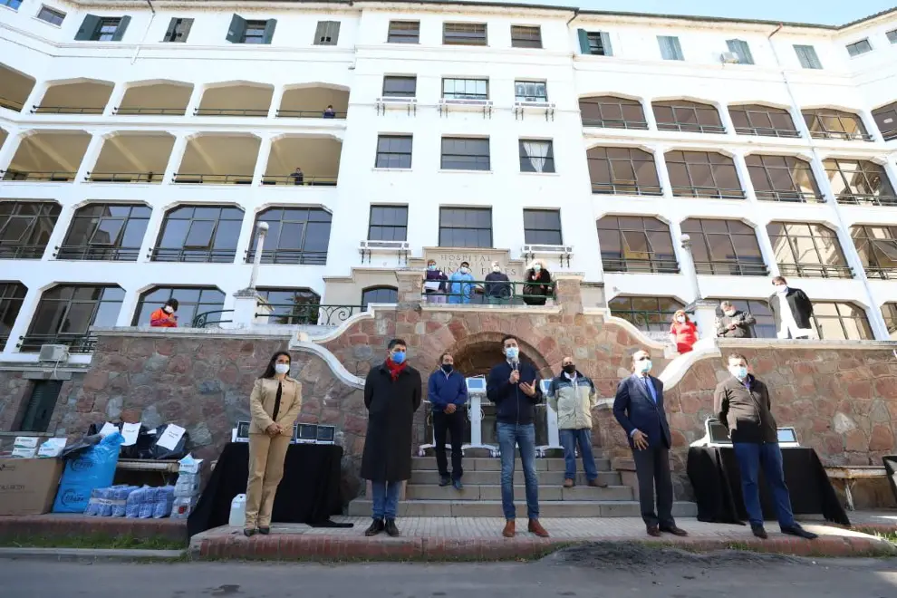 En el Domingo Funes, Calvo entregó cuatro respiradores, 12 monitores multiparamétricos y un ecógrafo móvil, además de un cargamento con elementos de protección profesional que será repartido entre este hospital y el de Cruz del Eje.