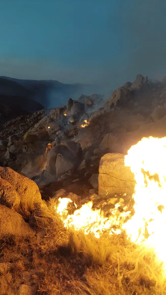 Durante la madrugada de este sábado, los bomberos y equipos de emergencia enfrentaron condiciones menos adversas que las del día anterior. Aunque el viento ha disminuido, el terreno difícil sigue complicando las labores de control y extinción del fuego.
