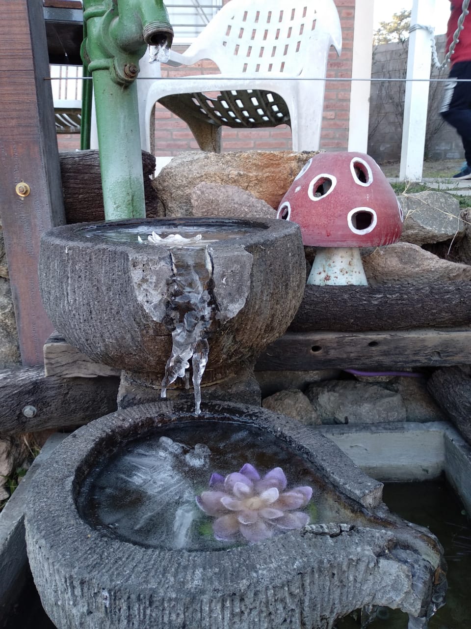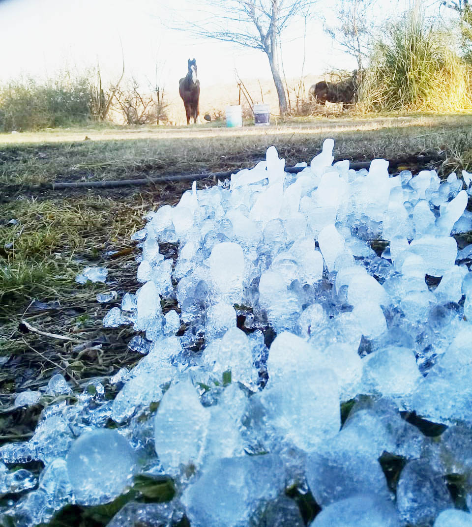 Numerosos charcos, fuentes y pequeñas piletas amanecieron con una capa de hielo en la superficie producto de la bajísima temperatura que sufrió la zona durante toda la noche del martes y la madrugada del miércoles.