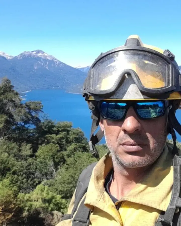 Daniel Arce, juefe del cuerpo de Bomberos de Icho Cruz es uno de los especialistas cordobeses que está trabajando en los incendios foretales que afectan al Parque Nacional Los Alerces, en el sur argentino.