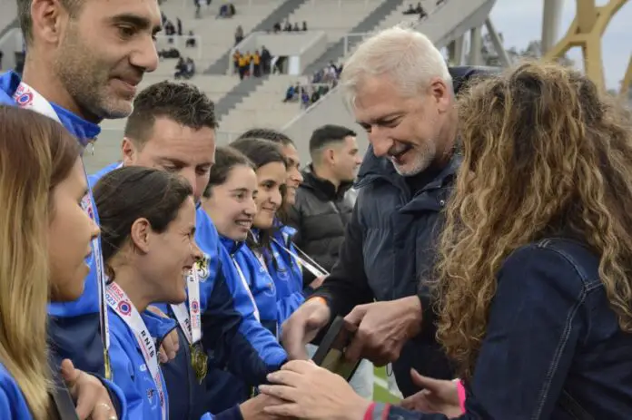 En ese marco, el Gobierno de la Provincia de Córdoba y el Club Atlético Talleres, rindieron un homenaje a las campeonas entregándoles un presente recordatorio de manos de Héctor Campana, Presidente de la Agencia Córdoba Deportes y Claudia Martínez, Ministra de la Mujer.