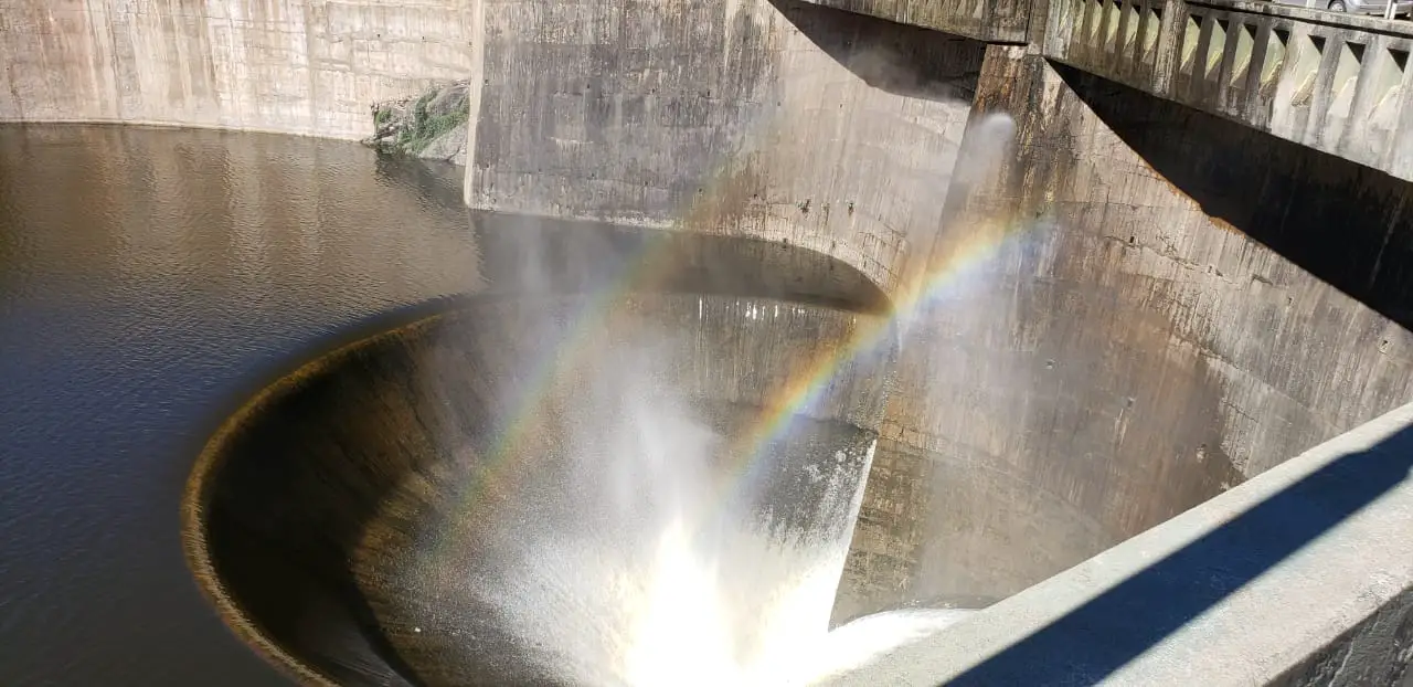 Este domingo, el lago superó la cota de 35,4 metros del nivel del vertedero y el embudo comenzó a hacer su trabajo.