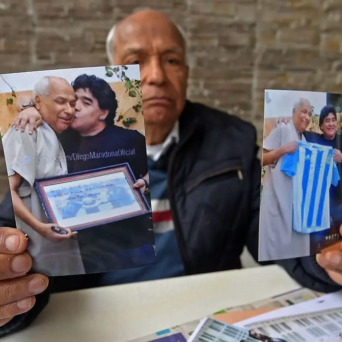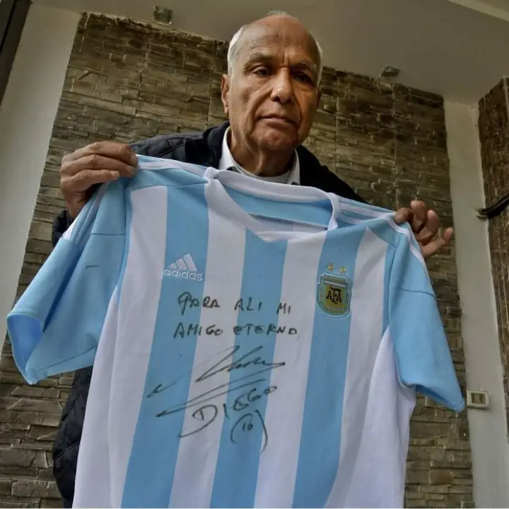 «Para Ali, mi amigo eterno», reza la frase en la camiseta de la Selección Argentina que le regaló Diego y donde estampó su firma. Además, el juez también mostró las fotos del encuentro en México y del posterior donde Maradona le ofreció su regalo.