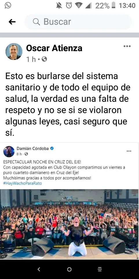 El especialista Oscar Atienza, una de las voces desde el sector de la salud más escuchada durante la pandemia, expresó en sus redes sociales: «Esto es burlarse del sistema sanitario y de todo el equipo de salud. La verdad es una falta de respeto y no sé si violaron algunas leyes, casi seguro que sí».
