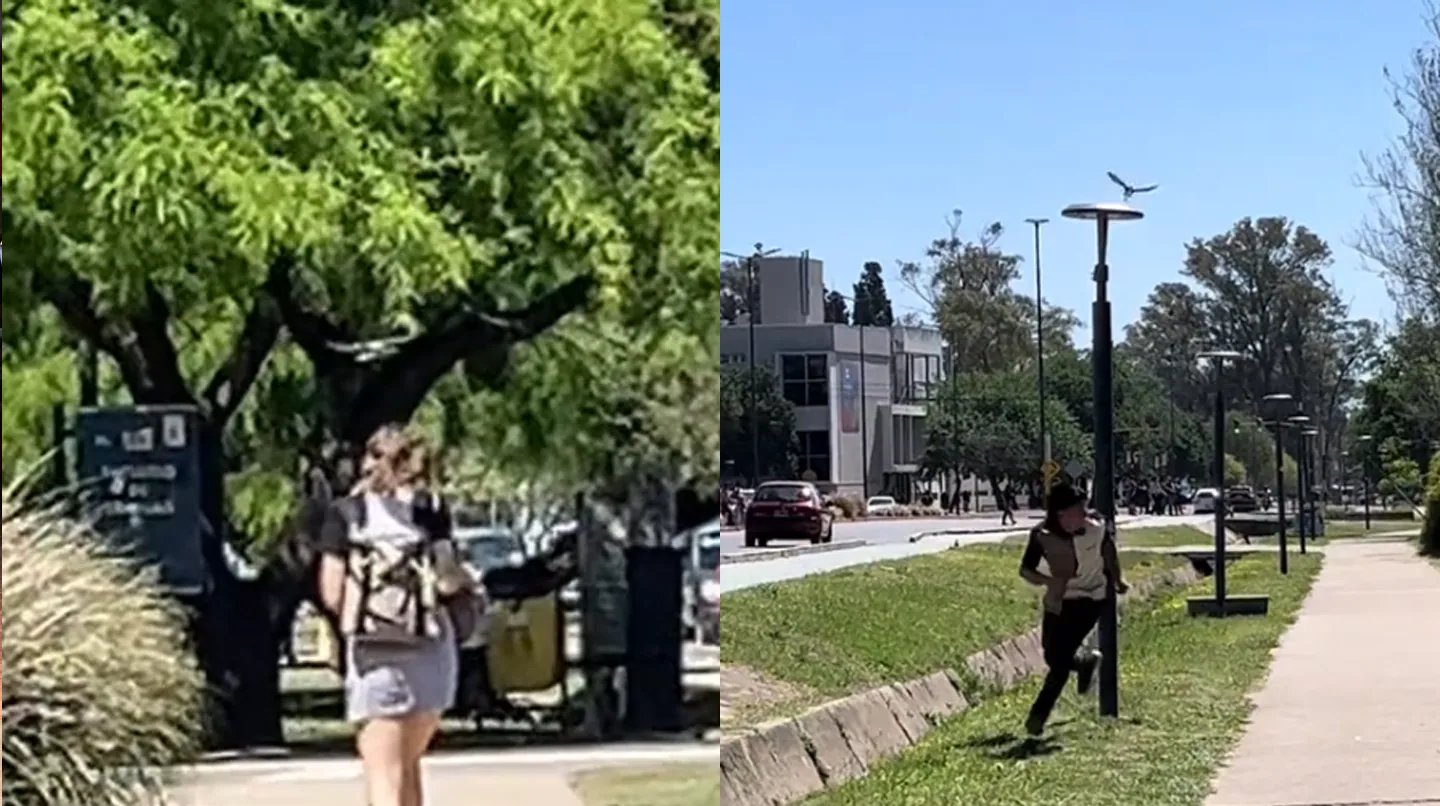 Según relataron testigos, el ave suele posarse sobre un muro cercano a la Facultad de Lenguas, en Ciudad Universitaria, y reacciona de manera agresiva cuando alguien se aproxima demasiado. En las imágenes difundidas se observa cómo la calandria abre sus alas, vuela en dirección a la cabeza de los jóvenes y los picotea antes de alejarse unos metros.