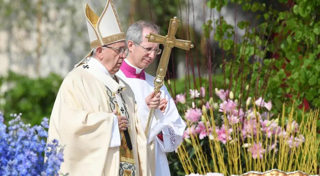 La Pascua «no es una fiesta con muchas flores», prosiguió el pontífice argentino señalando a los jacintos, tulipanes y narcisos, además de ramos de rosas rosas, que decoraban las escaleras que llevan a la basílica.