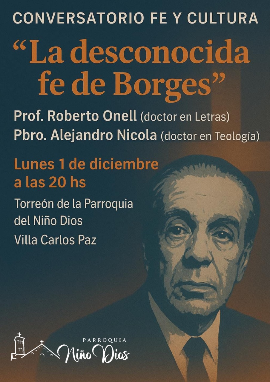 El lunes a las 20, en el marco de los Conversatorios Fe y Cultura, junto al padre Alejandro Nicola de la Parroquia del Niño Dios, doctor en Teología, brindarán una charla con el tópico “La desconocida fe de Borges.”