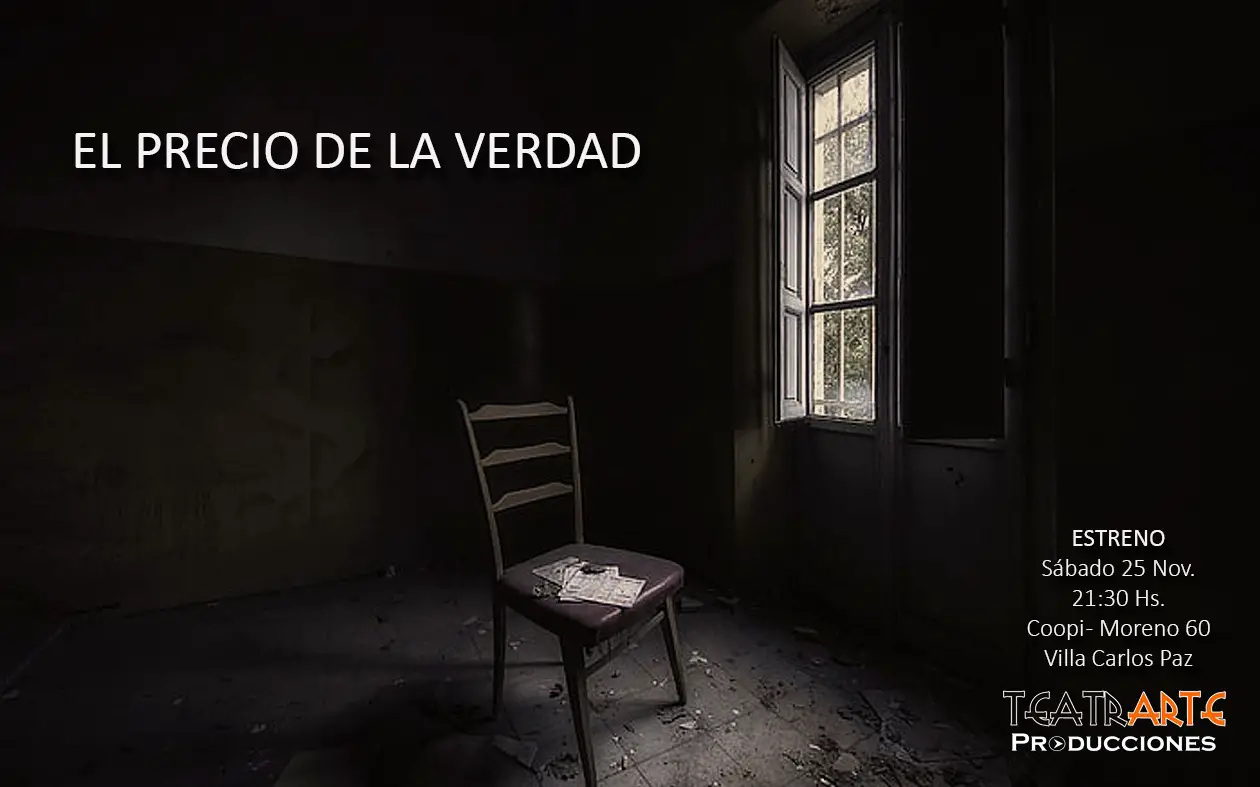 «El precio de la verdad» de Teatrarte producciones, dirigida por Belén Fuentes, es una obra de teatro que nace de una búsqueda dentro de diferentes conflictos de vida en una familia donde cada personaje tiene su propia verdad.