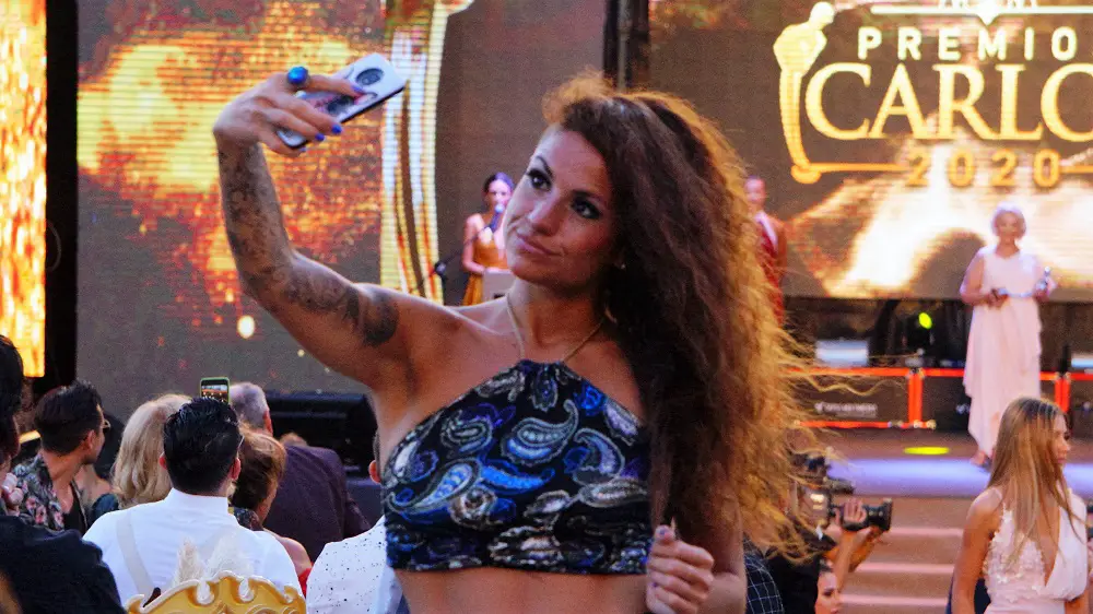 Las tribunas que se montaron para los Premios Carlos en los Jardines Municipales se llenaron bien temprano. El termómetro marcaba 38 grados y nada, la gente siguió ahí. Celulares en algo, filmar, fotear hacia el escenario y la selfie espontánea con el escenario detrás.