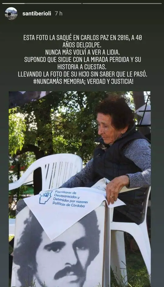 El 24 de marzo de 2016, en la marcha que se realizó en el Puente Cassafousth de Villa Carlos Paz por los 40 años del Golpe de Estado, en el Día de la memoria, la verdad y la justicia, una de las situaciones que más nos conmovió a todos quienes concurrimos fue la imagen de Lidia.