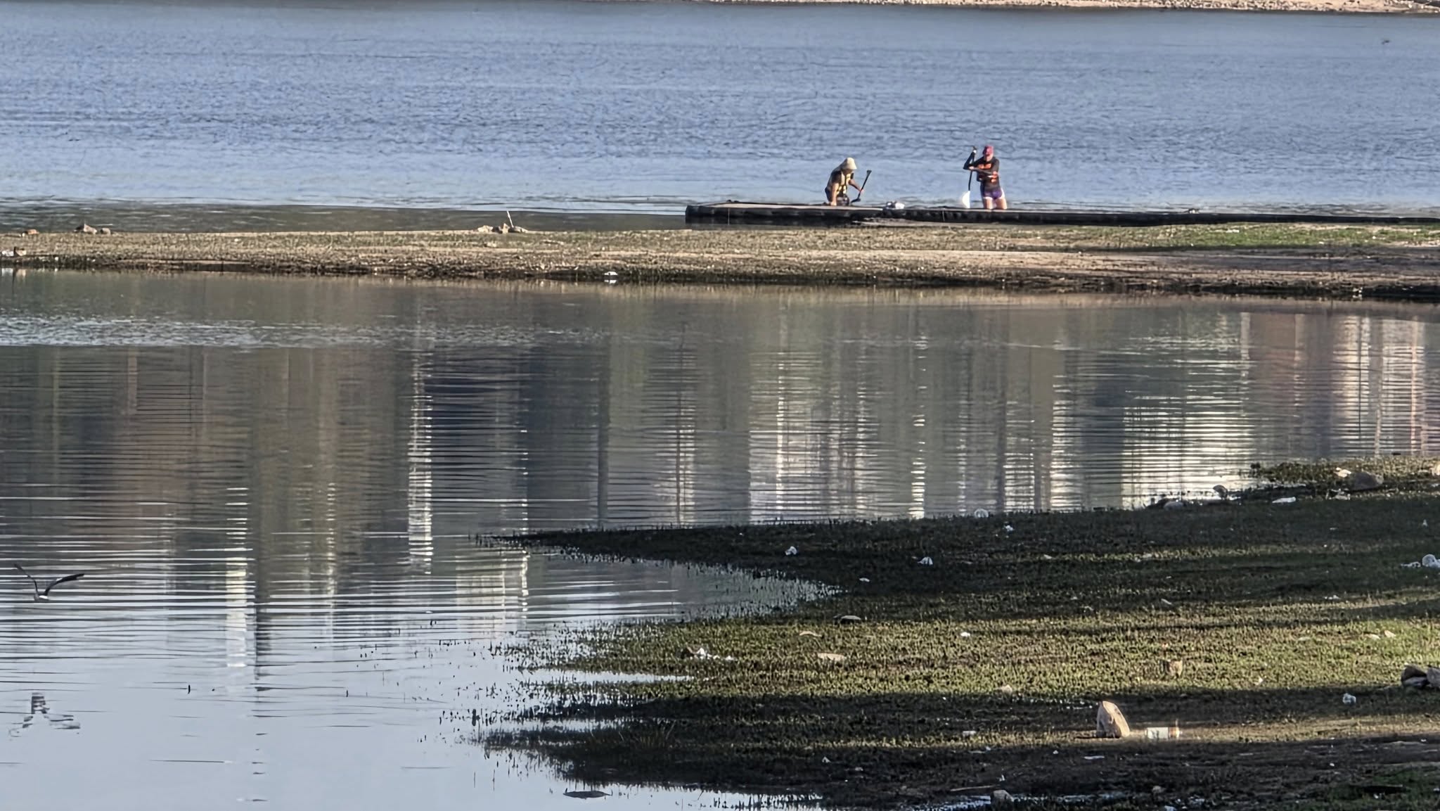 El embalse está 3,5 metros por debajo del nivel del vertedero —establecido en 35,30 metros—, lo que explica la aparición de pequeños islotes en algunos sectores del lago y del río San Antonio, a la altura de la zona céntrica y del puente Uruguay.