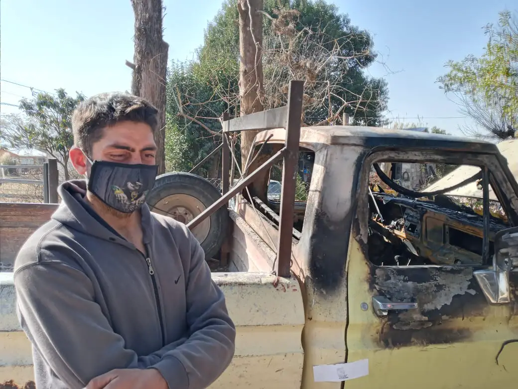El joven bombero voluntario contó lo que sucedió esta mañana en el frente de su casa. Lo despertaron los gritos de los vecinos y cuando salió vio que habían prendido fuego a su camioneta.