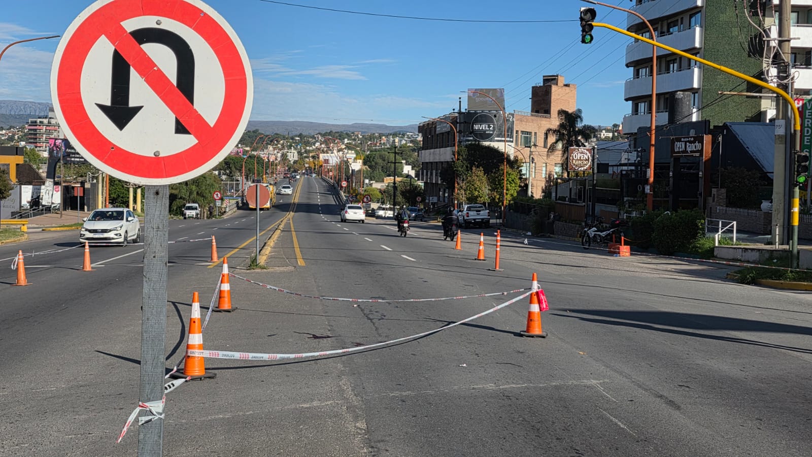 La foto engaña. El zoom aplana la escena, ordena el caos; parece una avenida cualquiera en una mañana cualquiera. Pero no. Acá, en la Uruguay casi Olsacher, entre estaciones de servicio y apuros, anoche una mujer fue atropellada por una moto. Y la ciudad, por un rato, se detuvo. Aún está la sangre de la víctima en el asfalto, oculta en el pliegue de este encuadre, 12 horas después.