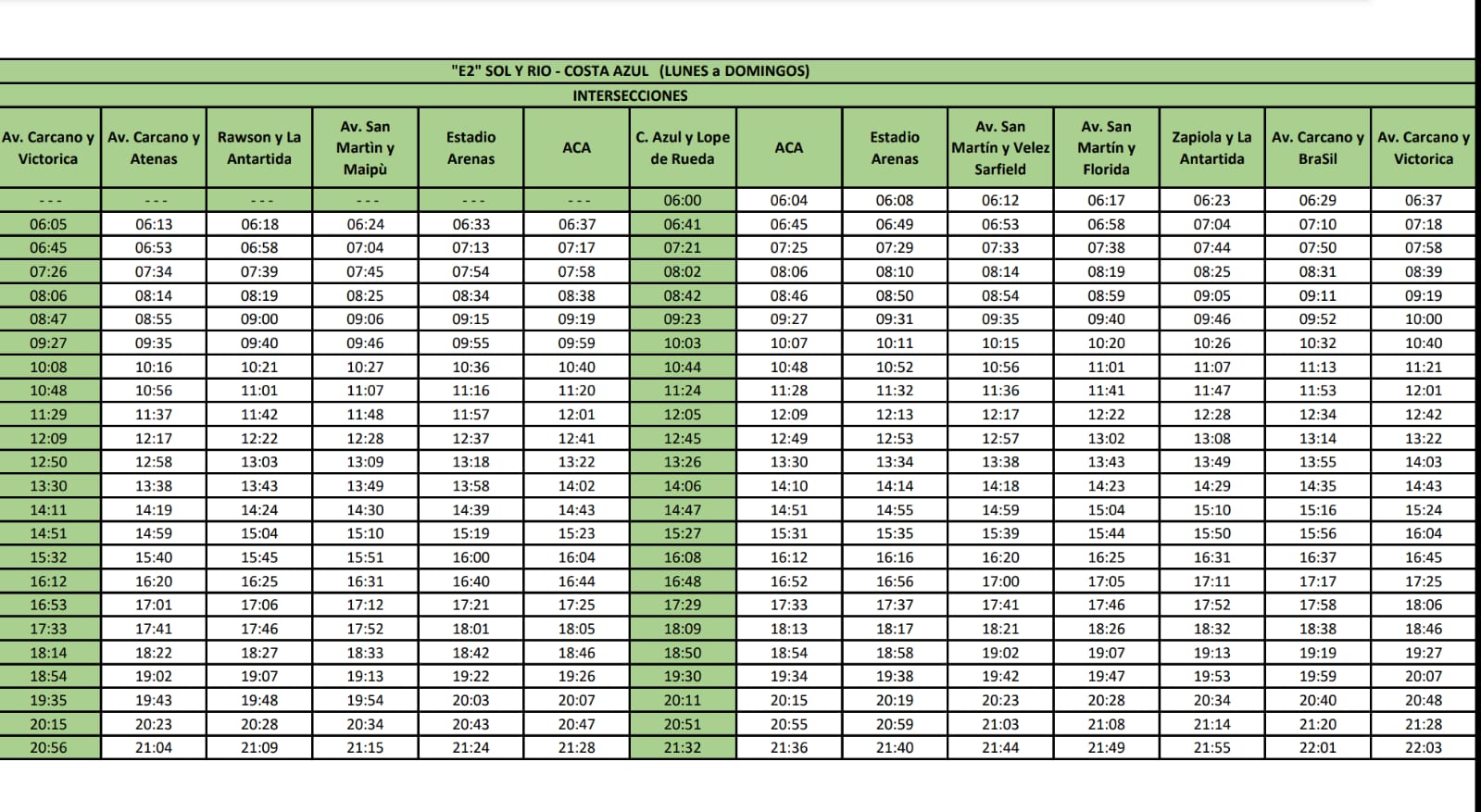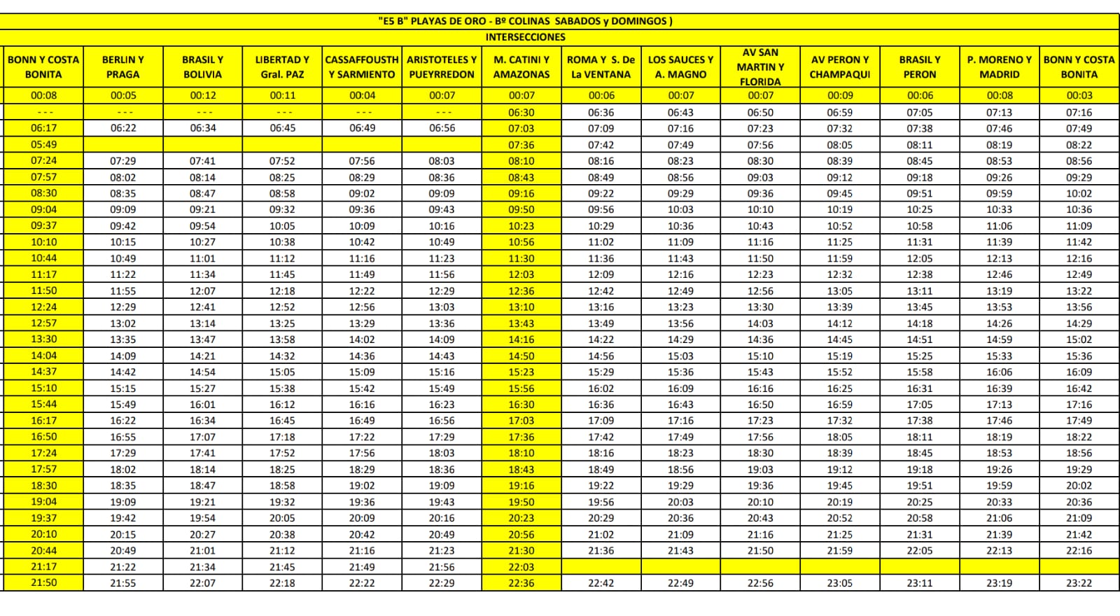 “E5 B” Playas de Oro – Colinas (sábados y domingos)