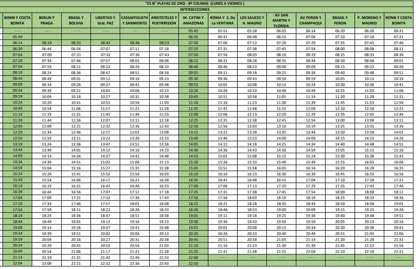 “E5 B” Playas de Oro – Colinas (lunes a viernes)