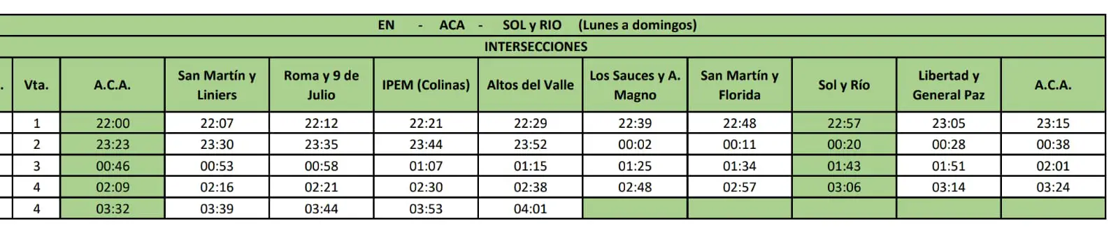 “EN” (Servicio nocturno) ACA – Sol y Río