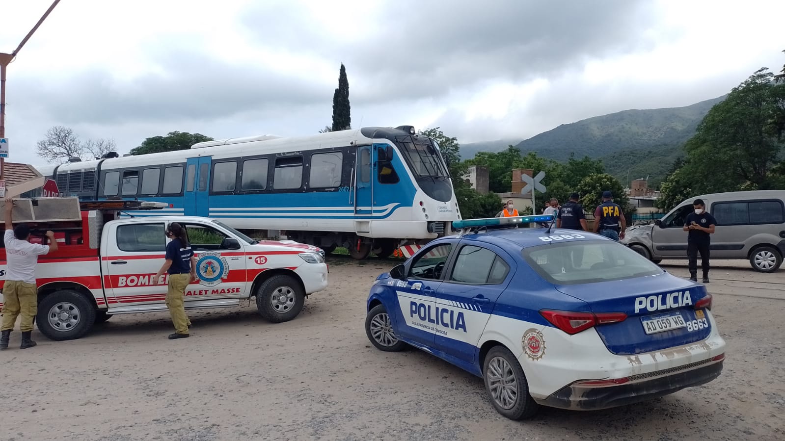A las 13.20 de este domingo, la formación del Tren de las Sierras embistió a un utilitario Kangoo a la altura del vado del puente San Plácido, en Bialet Massé.