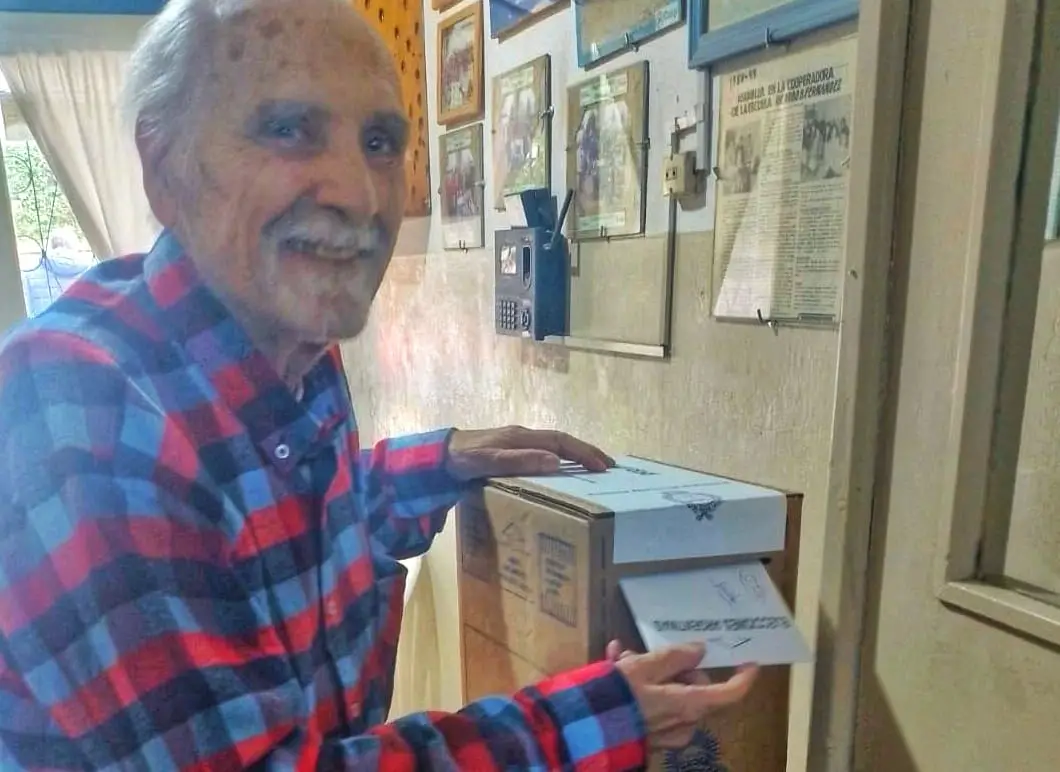Américo Monassa, con 92 años, se presentó este domingo para votar en la escula Bernabé Fernández, en Villa Independencia.