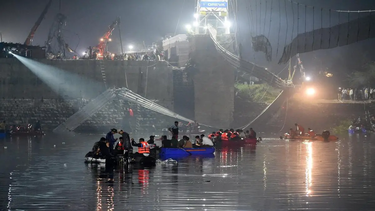 India: Al menos 60 muertos en el colapso de un puente colgante recién reparado
