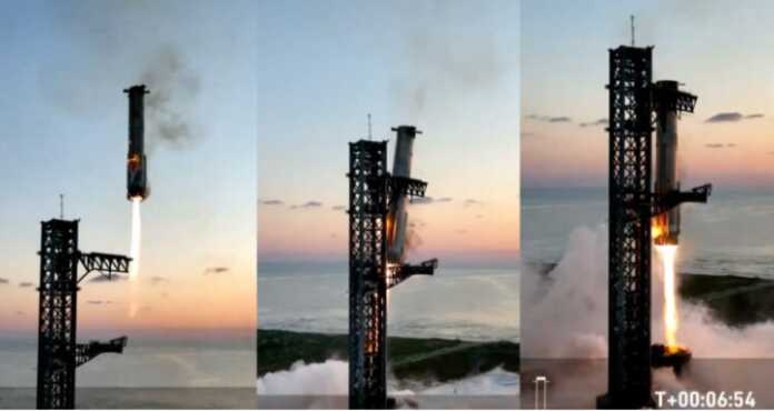 La gigantesca nave consiguió poner en órbita el módulo principal con la ayuda de los 39 motores Raptor de su primera fase, que logró regresar desde la estratosfera, realizar una desaceleración controlada y posarse en la misma plataforma de lanzamiento para ser recuperada por los “chopsticks” (palillos), una grúa que atrapa esa parte de la nave para volverla a usar.