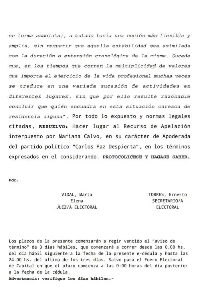 Este lunes se conoció la decisión judicial en un documento que lleva la firma de la jueza electoral de Córdoba, Marta Vidal.