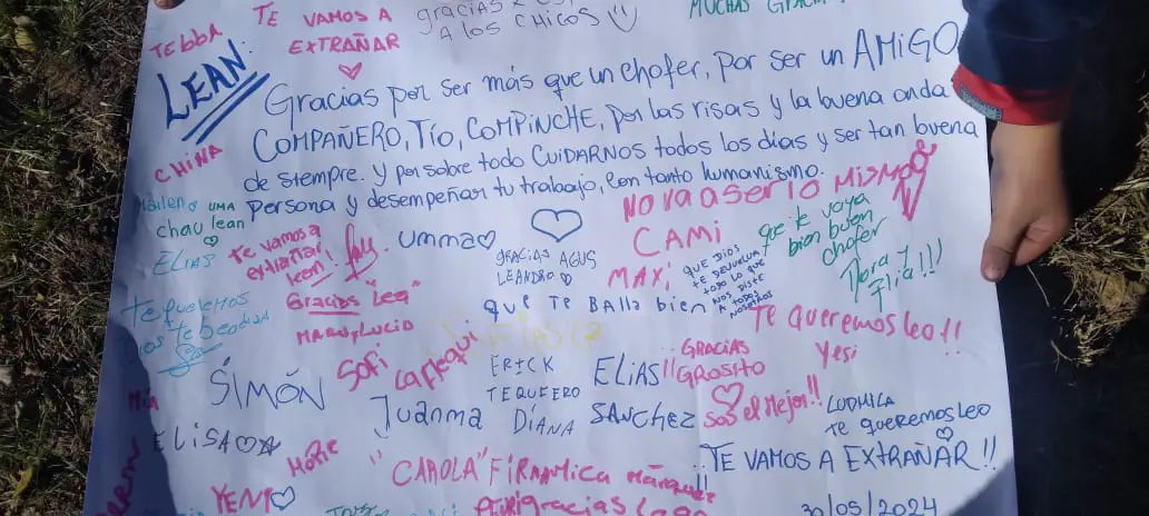 Leandro ha generado un vínculo tan cercano con los chicos y chicas que no faltaron cartitas, dibujos y mucho cariño para despedirlo: «Gracias por ser más que un chofer, por ser un amigo, compañero, tío, compinche. Por las risas y la buena onda de siempre. Y por sobre todo, cuidarnos todos los días».