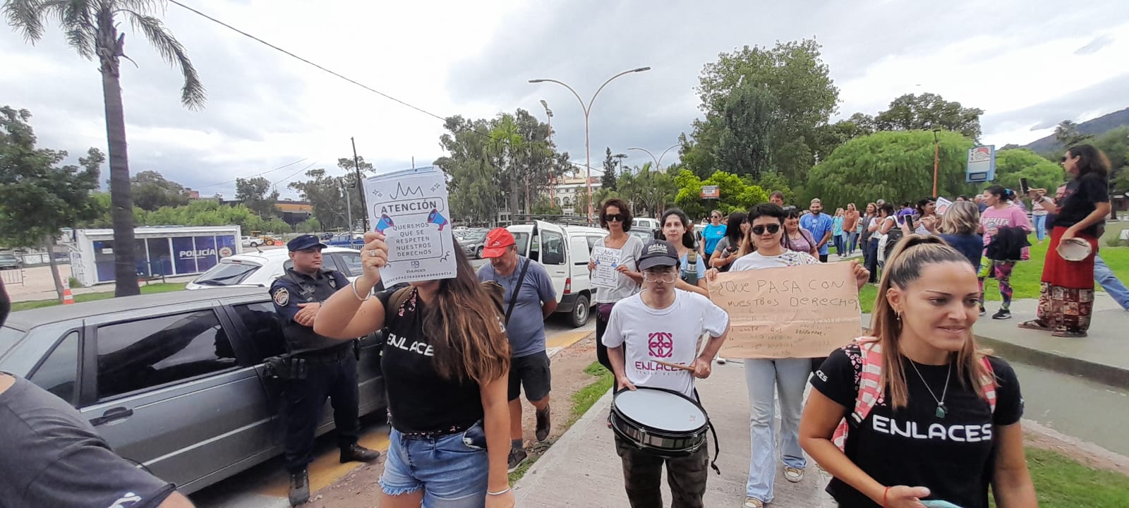 Silvina Quintana, miembro del colectivo «La Unión hace la fuerza», y una de las profesionales que manifestaron, expresó en diálogo con Carlos Paz Vivo!: «Transportistas, prestadores individuales del servicio, Dai (profesionales que conforman el Equipo de Apoyo a la Inclusión) y acompañantes terapéuticos, estamos reclamando esta mañana».