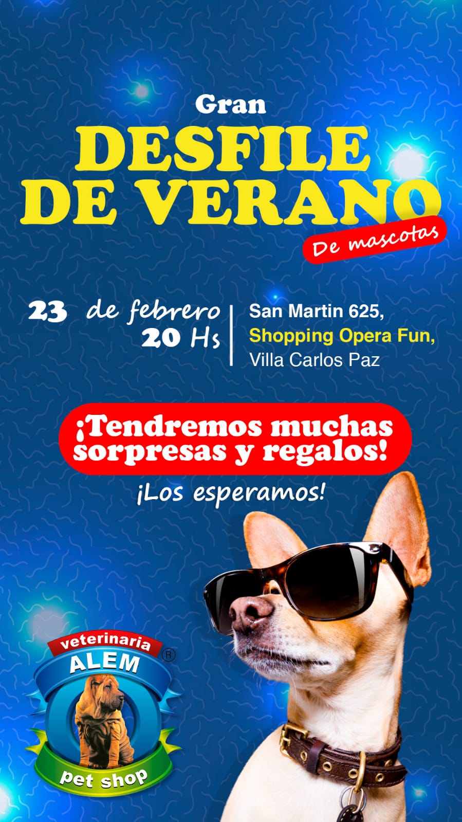 Expo Oferta, el outlet más grande del país, continúa deslumbrando en el Opera Fun de Carlos Paz hasta el 29 de febrero, para que no te pierdas ni una sola oportunidad de renovar tu guardarropa con descuentos increíbles. Pero eso no es todo, porque el viernes 23, ¡se convertirá en el escenario del Primer Desfile de Mascotas organizado por Veterinaria Alem! Un adelanto de diversión y glamour que no te vas a querer perder.