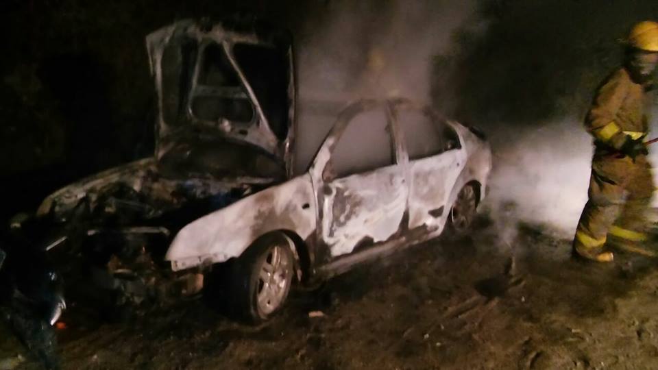 Bomberos Voluntarios de Villa Carlos Paz acudieron con dos dotaciones, y procedieron a extinguir el fuego que estaba declarado en el vehículo; así como también en los arbustos y árboles próximos a la ignición.