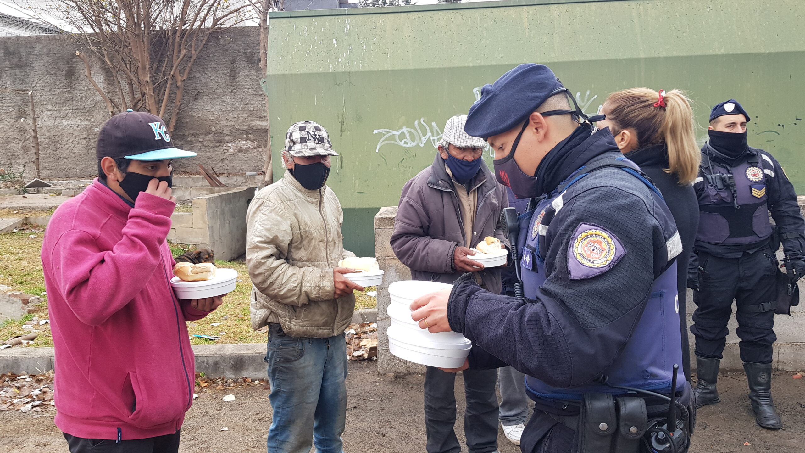 Tras la nevada del pasado miércoles, fenómeno que terminó acentuando la ola polar por estos días, efectivos de la Policía comenzaron a brindar comida caliente a personas que se encuentran en situación de calle.