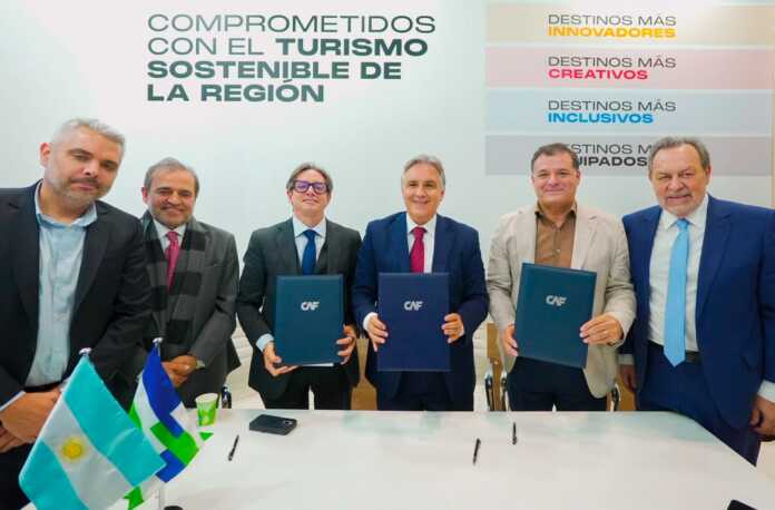 En Madrid, en el marco de la 45ª edición de la Feria Internacional de Turismo FITUR 2025, el gobernador Martín Llaryora suscribió un convenio de cooperación técnica con la Corporación Andina de Fomento (CAF), para la implementación del Plan Estratégico de Turismo Sustentable de Córdoba.