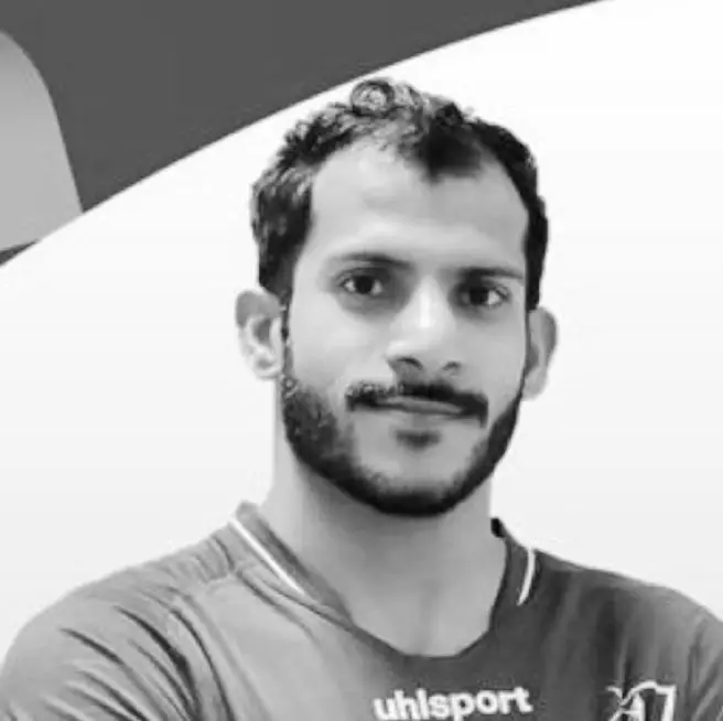 Se trata de Mukhaled Al-Raqadi, jugador del Muscat FC, quien realizaba junto a sus compañeros los movimientos precompetitivos antes del encuentro frente a Suqaiq por el torneo local.