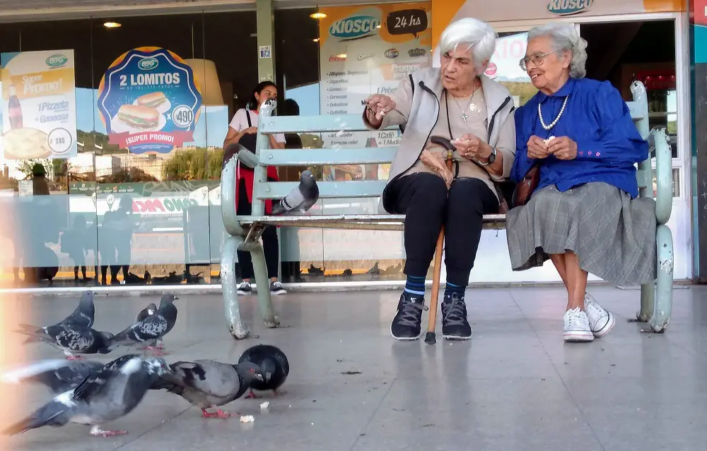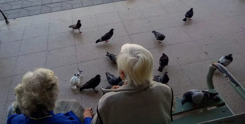 Zulema es la más callada pero me advierte que hable fuerte y claro. Y eso hago. Entre las dos charlan y debaten sobre las palomas y su manera de saciarse que parece algo imposible. “Mirá, a aquella le falta una patita”, dice Zulema señalando a una que salta entre las otras en busca de algunas migas.