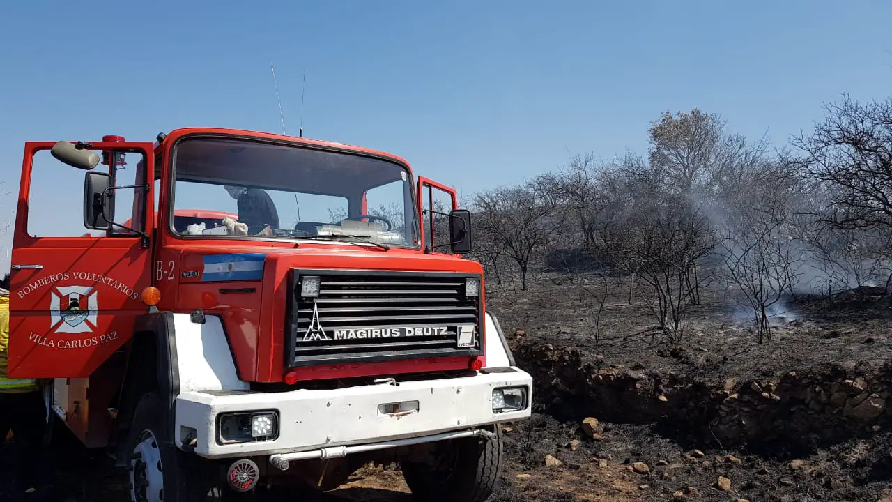 Tres dotaciones de Bomberos Voluntarios de Villa Carlos Paz trabajaron para apagar un incendio sobre calle Roma, a la altura de El Saladillo.
