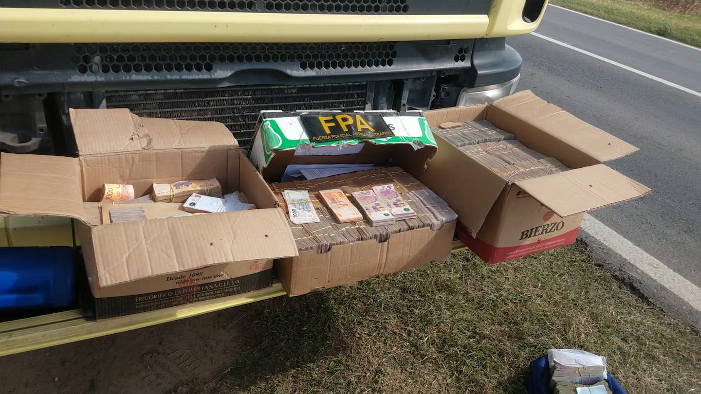 En un operativo desarrollado en la mañana de este sábado, la Fuerza Policial Antinarcotráfico (FPA) encontró numerosas cajas con fajos de dinero dentro de un camión que transitaba la ruta nacional 158 entre Arroyo Algodón y La Playosa.