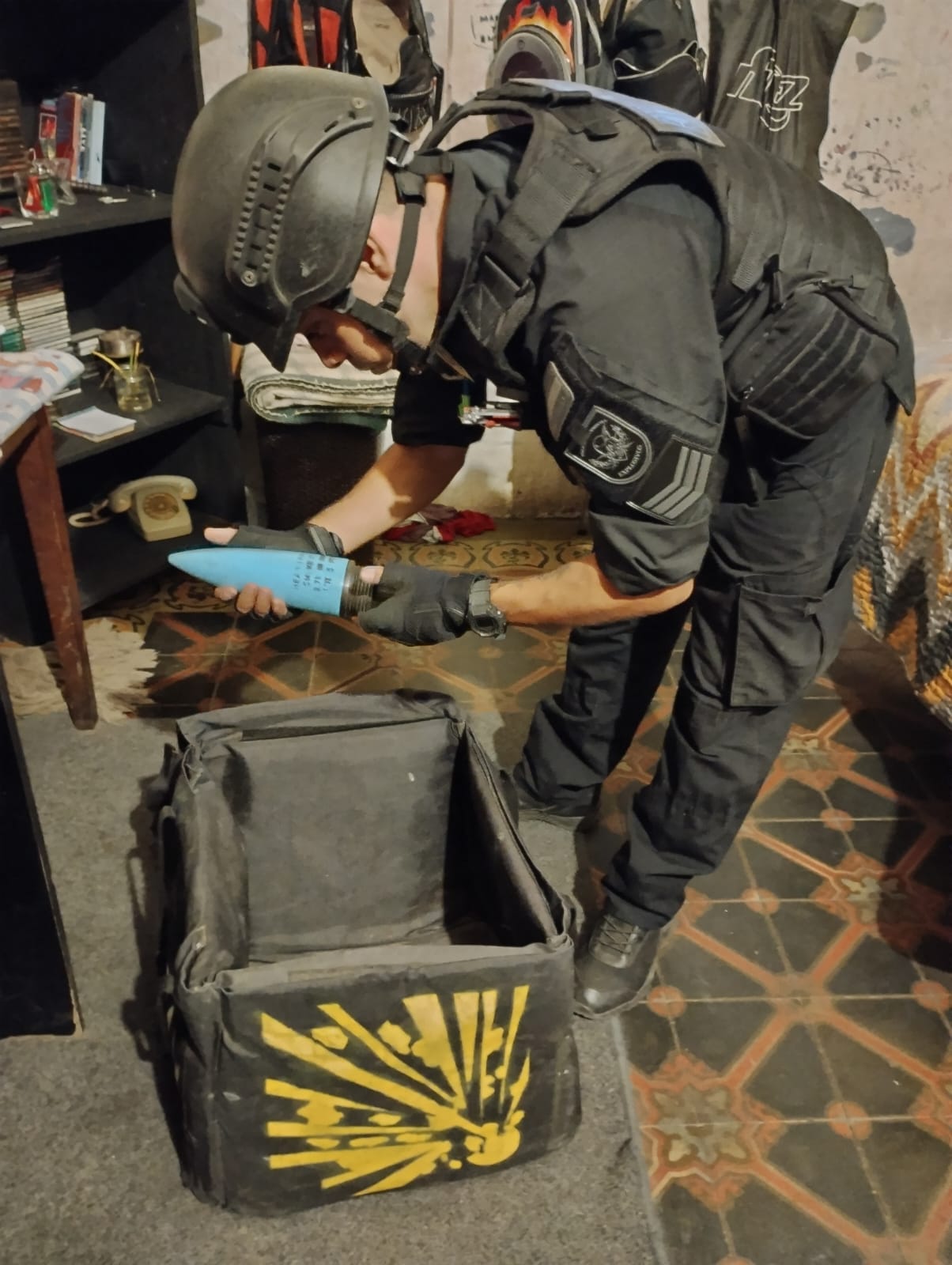 En el lugar trabajó personal de la División Brigada de Explosivos, que procedió a la remoción y posterior traslado seguro, del cohete, al polvorín de la dependencia en calidad de resguardo.