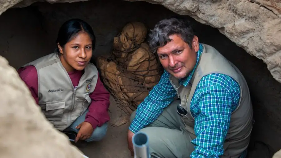 «Hemos logrado el descubrimiento de una momia que se encontraba ubicada al interior de una estructura funeraria de forma cónica subterránea y al ver las características se trataba de una momia que se encontraba amarrada con soguillas», dijo a la agencia de noticias AFP el arqueólogo Pieter Van Dalen, responsable del proyecto Cajamarquilla.