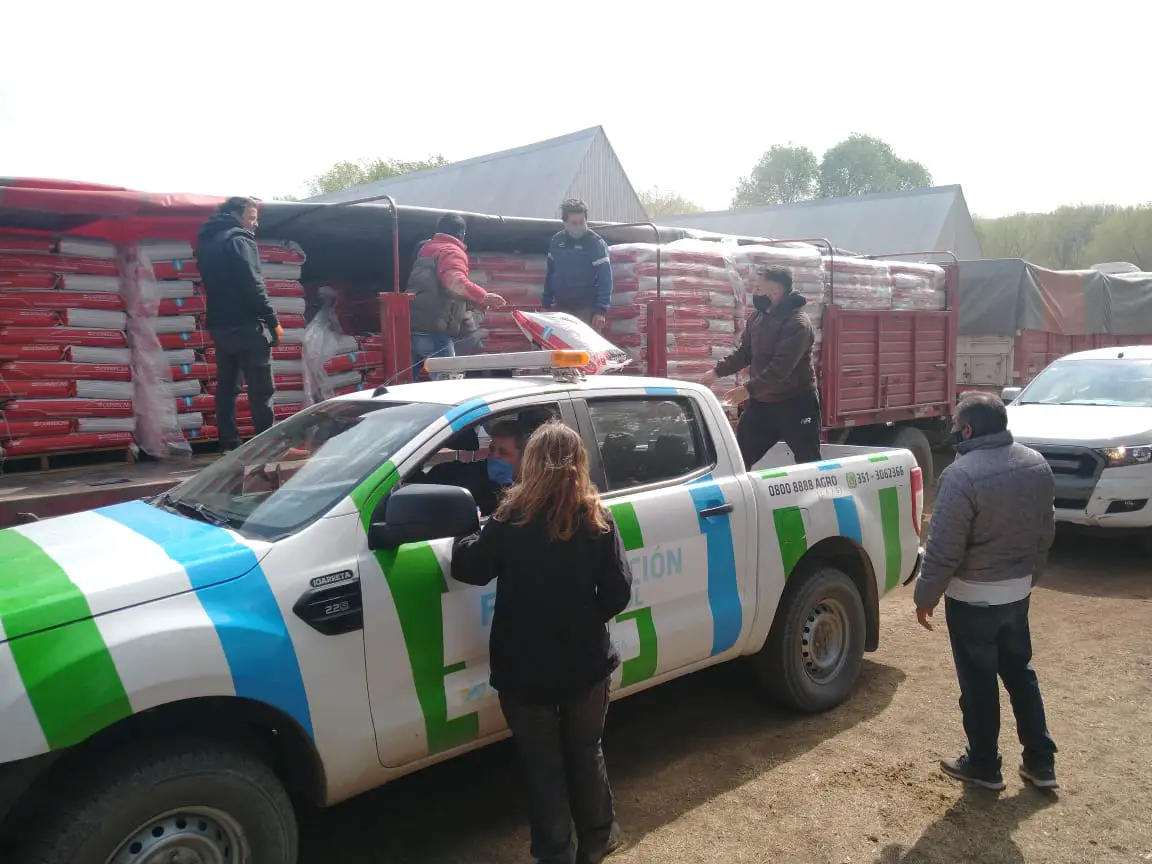 Desde las primeras horas de este sábado y hasta la tarde, se llevó adelante un operativo de distribución de 1400 bolsas de alimento balanceado para nutrición animal de 25 kilos cada una, destinadas a 140 pequeños productores de la Pampa de Olaen que resultaron afectados por los incendios de las últimas semanas.